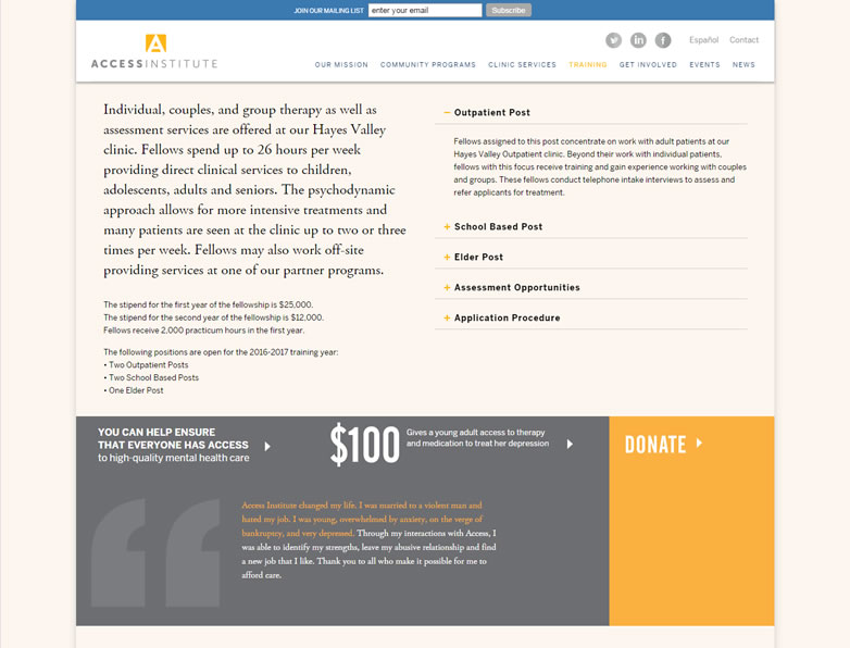Access simply needed the site converted to WordPress. This meant the new site would be responsive, have a simple interface for making edits, and include a section for the new blog.