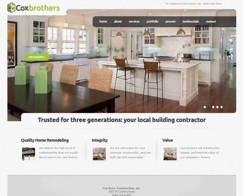 Cox was looking for a clean site to showcase their extensive construction portfolio in multiple photo galleries.