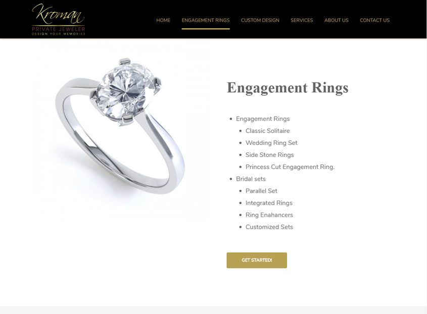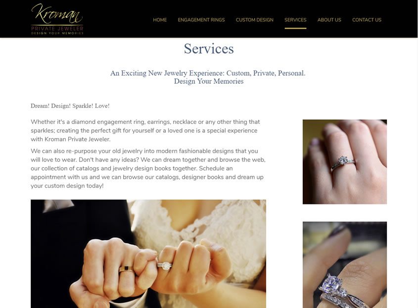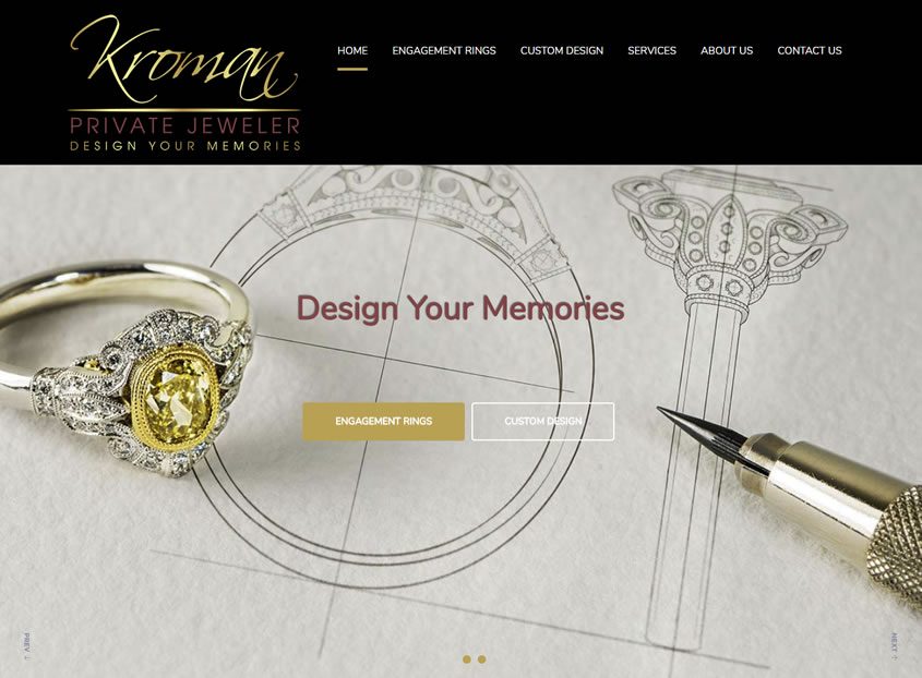 Josh Kroman was looking for clean modern jewelry web design to showcase his custom jewelry business. Custom Jewelry Web Site Designer San Jose, Bay Area.
