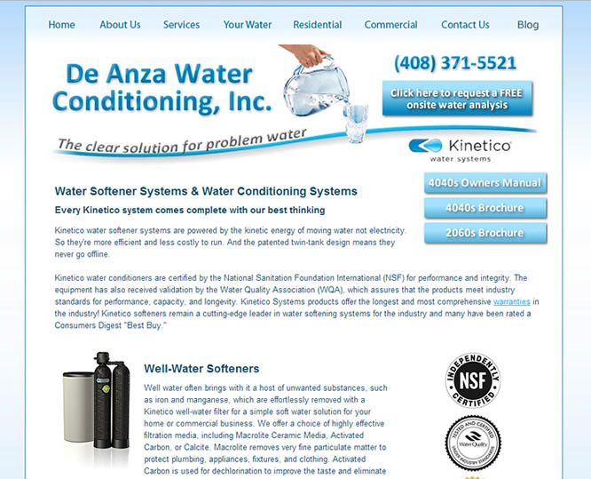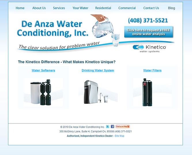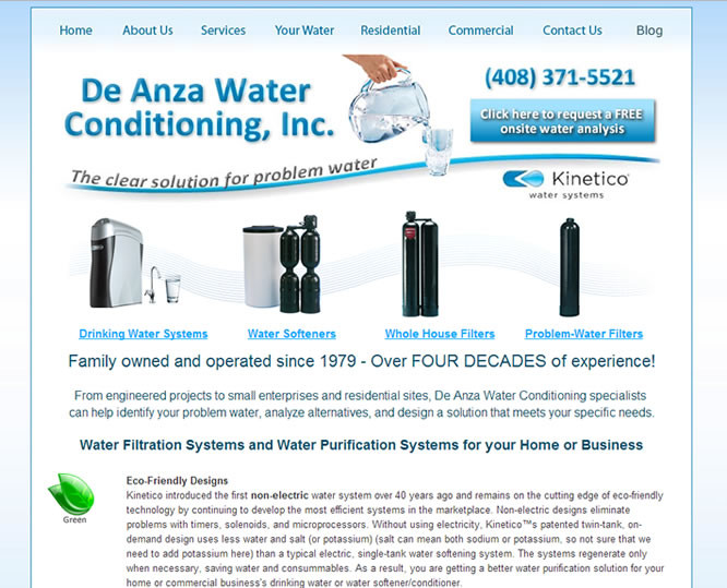 DeAnza Water Conditioning is a family owned and operated business and wanted an updated image that would portray quality and professionalism. Several email forms were created to simplify the contact method and allow the information to get routed to the correct person quickly and automatically. The drop down menu ensures a fast, easy to navigate, and consistent user experience.