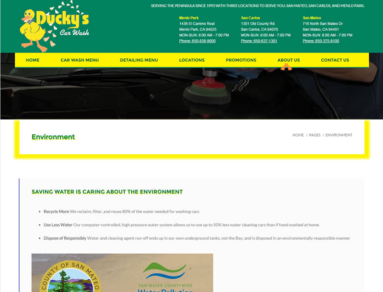 - Car wash and Detailing menu, along with photo gallery, and E-coupons.