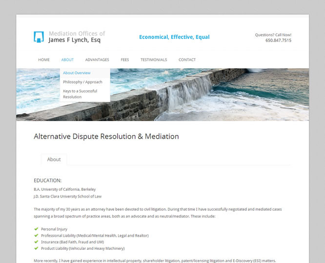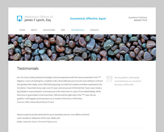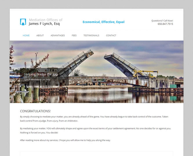 Lynch was trying to break out of the typical legal site with images of people in a courtroom, etc. The goal was clean, classy and artistic.