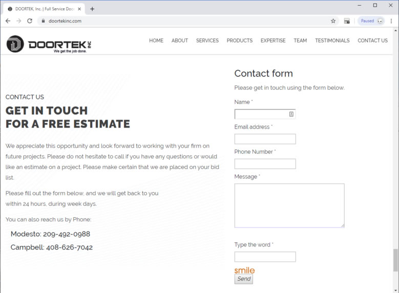 Doortek, a small business needed professional Modesto web design to be modern, fresh, and clean, also mobile friendly Modesto website design.