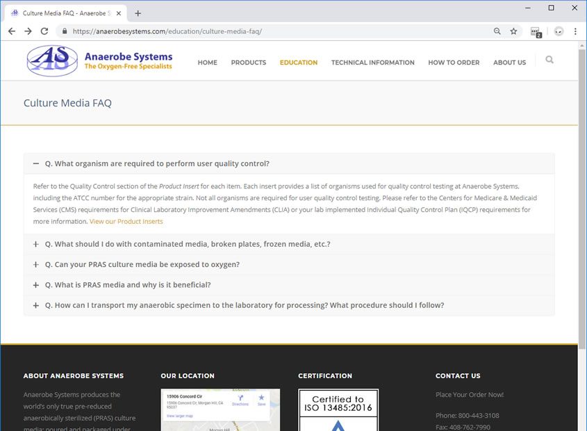 Anaerobe Systems was on an outdated CMS via Google Sites. The goal was to build a mobile friendly site, that allowed easy updates, and the transfer of all assets to the new hosting provider.