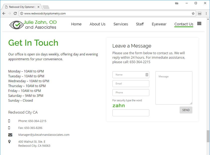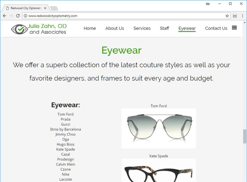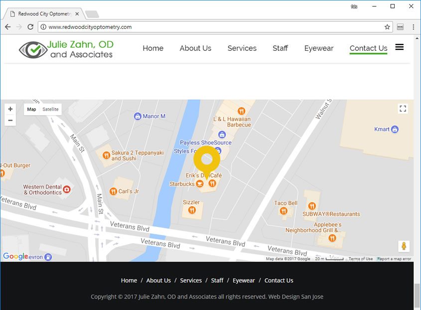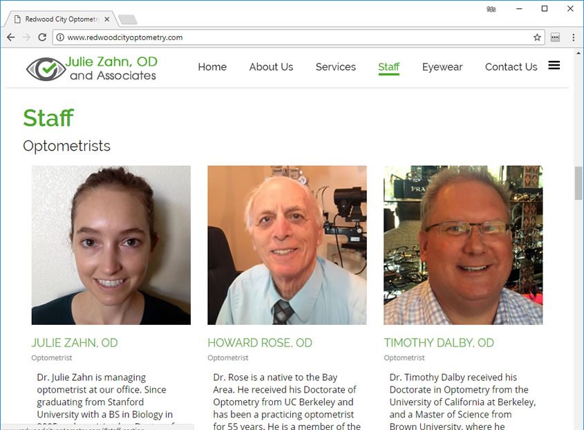 Julie Zhan was looking for Optometry web design, mobile friendly, and easy to navigate web site. Optometrist web designer in the San Jose Bay Area. Web site design for Optometrists.