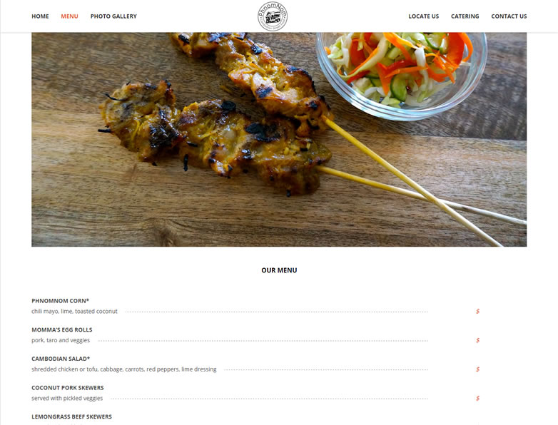 PhnomNom Food Truck was looking for a clean site that was mobile friendly, to showcase not only the photo gallery, but also the menu for this new Bay Area food truck.