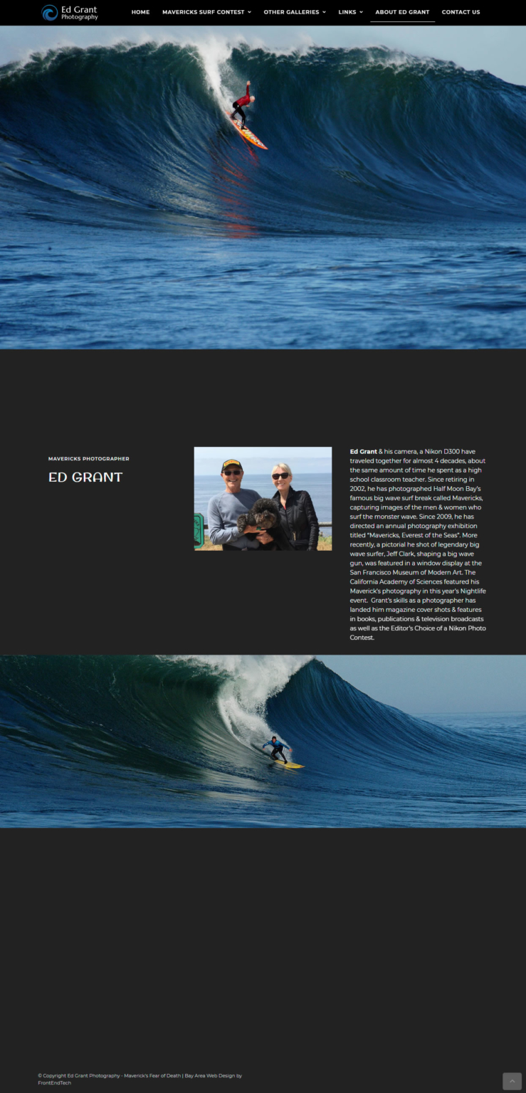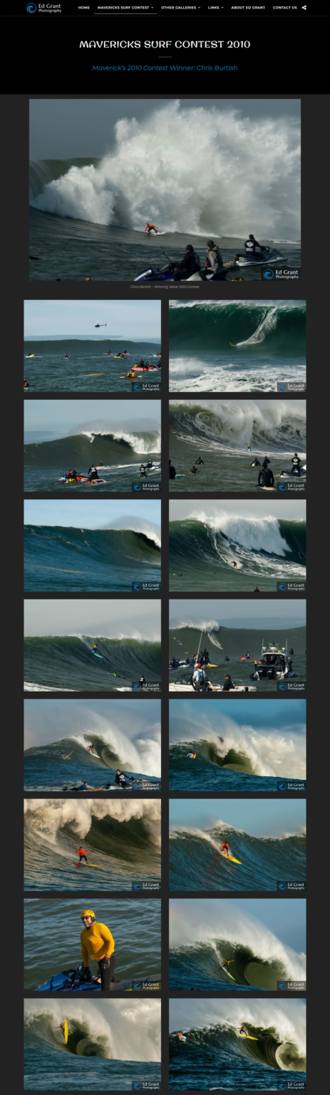 Ed Grant was looking for a new web site that would showcase their photography of the Maverick’s Surf Contest.