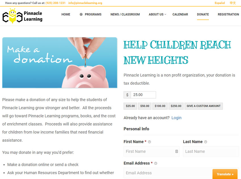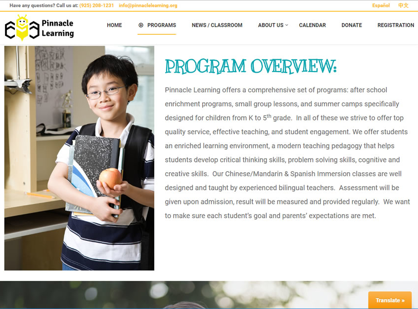 Pinnacle learning needed the works, from logo to CMS, to calendar, custom programming, and more.