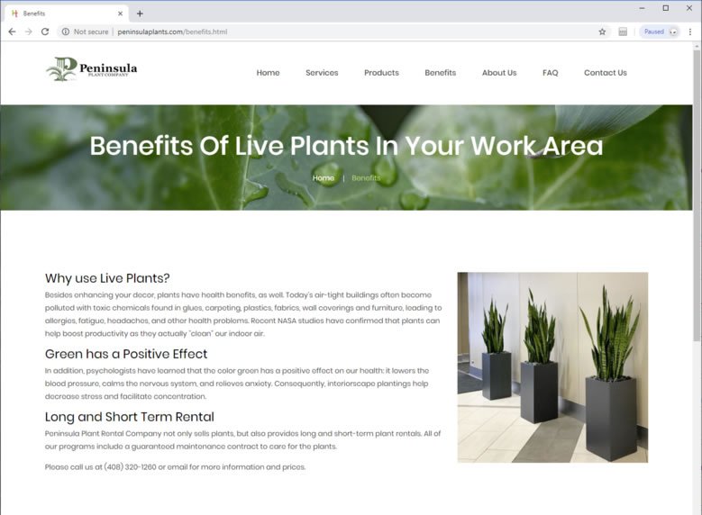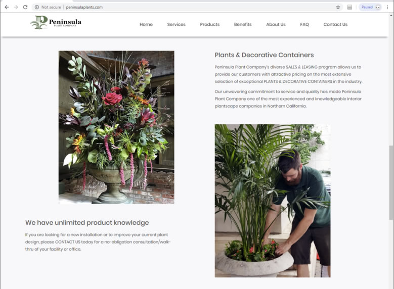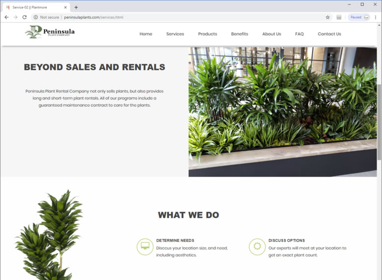 Peninsula Plants had lost access to their old site, and needed not only a new design, but a discovery and restoration of the old content. Mobile friendly, and easy to navigate.