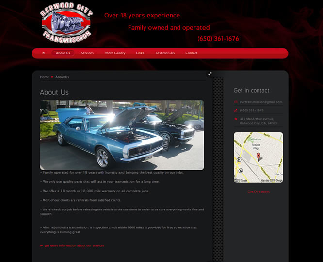 Redwood City Transmission wanted an upgrade that would be mobile browser friendly, and eye catching.